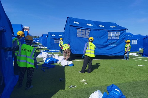 新疆南方中央商务区项目援建任务主要分为2500个隔离帐篷的水电安装及帐篷内防潮垫、室内装饰等的布置摆放工作及现场全部垃圾清理清运工作。在项目人员进场后,面临着安装工程时间短、工程量较大,施工高峰集中,施工协调难度大等各方面困难。