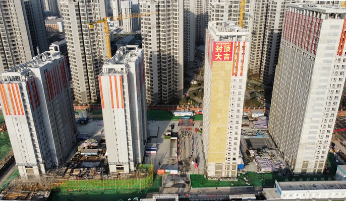 本项目位于西安市高新区,总建面75052平方米,占地面积19741平方米,建设内容包含4栋高层住宅、2栋2层商业裙房、1栋门卫室及地下车库等。本项目是是高新区重点民生工程之一,建成后将有效缓解周边区域中低收入人群,外来务工人员及新就业大学生的基本居住问题。项目开工以来,项目部克服工期紧、任务重、场地小、疫情形势严峻等各类不利因素,科学组织、多措并举,狠抓安全、质量、进度,顺利完成项目所有楼栋的全面封顶任务,争分夺秒保质保量如期交付,获得了当地政府及业主的一致好评。