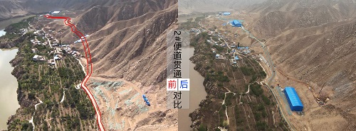 三分部项目部便道共分为1#、2#、3#三段,总长度为8255米,本次贯通的2#便道长1000米。便道贯穿兰州市皋兰县什川镇长坡村垮垃圾塔、八道湾崖山脉,所经区域山高坡陡、沟谷纵横。其中2#便道因征拆影响受到当地村民的百般阻扰,迟迟未能打开施工局面。严重制约到本项目大和坪隧道、上和坪隧道、黄河特大桥、上和坪大桥施工机械设备和建筑材料进场,导致项目建设工期滞后。为破解这一难题,项目部在上级公司的坚强领导下,超前谋划、主动出击,成立了2#便道贯通攻坚小组,多次与县、镇、村等相关部门商讨对策,反复深入村民家中沟通对接,于3月底打通所有疑难关口开始施工。施工过程中克服了时间紧、任务重、作业场地狭小、安全风险多等诸多不利因素,采取加班加点、见缝插针、攻坚小组全程督战等措施,经过二十余天日以继夜的奋战,提前6天完成2#便道贯通既定目标任务。